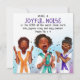 En afroamerikansk trio av kvinnor klädda i vitt med individuellt färgade sashes sjunger lovsånger under högtiden och skapar en glädjefullt ljud med händer, röst och instrument.
