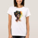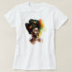 Kraftfull t-shirt med en afrikansk-amerikansk kvinna omgiven av en dynamisk palett med gult, rött och grönt i färg. Inspicerat av afrocentriskt pride, egenmakt och kulturarv. Perfekt för kvinnor som tar till sig styrka, kärlek och identitet. Perfekt-gåva för Svarta historiens månad, Junettedel, Kwanzaa, kulturevenemang eller daglig egenmakt.