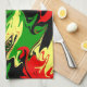 Röd, Gult, Svart och Grönt Swirls Dramatiskt levande snurrar av Afrocentric-inspirerad, gult, svart och grönt designad kökshandduk. https://www.zazzle.com/store/celestesheffey