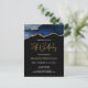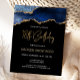 Denna trendiga 18-års inbjudan postkort har en akvarellbild av en agatgeod i olika nyanser av blått med falska guldhöjdpunkter. Orden "18-årsdag" visas i falskt guld glitter i dekorativ modern handskriven stil. Anpassa den med namnet på hedersgästen i guldfärgad text och detaljerna i vitt på svart bakgrund.