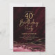 Burgundy och guld agerar 40-årsfestinbjudan. Elegantens moderna utformning med mörk red marsala vin-vattenfärg agate marble geode-bakgrund, faux glitter guld och typography-skript. Trendig inbjudan-kortets perfekt för en snyggt kvinnor i firande. Skrivna Zazzle-inbjudningar eller digital utskrivbar mall för omedelbar nedladdning.