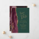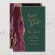 Den här eleganten är modern när du sparar datumkortet och har en burgudisk vattenfärgsagat gräns som trimmas med faux guld glitter. Anpassa enkelt guld-färgad-texten på en bakgrundsbild av grönten. En matchande burgundi- och guld-agate-design visas på baksidan.