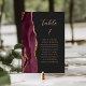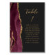 Agate Burgundy Guld Modern Script Mörk Bröllop Bordsnummer