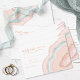 Alla bröllop-formgivningar är inte skapat lika. De asymmetriska layouterna för biet i den här slående bröllop-uppsättningen visar att det inte är ett dåligt sak! Vågigt band av färg i kontrasterande skuggor av och mjuka tealblått från ro guld med ett centrum med glittrande kristallform från en geode/agat-accent på de flesta delara i setet. Det "OSA"-kort för bröllop som visas här innehåller ovanstående tillsammans med en mall för att lägga till relevanta uppgifter om bröllop. Med det omvända kan du också lägga till namn och bröllop-datum för brudgummen och brudgummen. Sök i ID647 om du vill se alla koordinerande delara i den här uppsättningen.