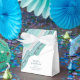 Alla bröllop-formgivningar är inte skapat lika. De asymmetriska layouterna för biet i den här slående bröllop-uppsättningen visar att det inte är ett dåligt sak! Vågigt band av färg i kontrasterande skuggor av tealblått och rosa med ett centrum med glittrande kristallform bildar en geode/agat-accent på de flesta delara i setet. I den här "Tack"-förmånspåsen för bröllop finns ovanstående tillsammans med en mall för att lägga till ett personligt meddelande, namn och bröllop. Sök i ID647 om du vill se alla koordinerande delara i den här uppsättningen.
