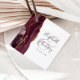 Den här eleganten har en märkre med modern bröllopsförmån en burgundisk vattenfärgsdesign som trimmas med faux guld glitter. Anpassa enkelt grått-texten för kol mot vit bakgrund, med namnen av bruden och skum i handskriftsbilder över en stor, blek dammig, burgundisk amperand. Lägg till ett personligt meddelande i skriptbokstäver på baksidan.