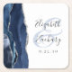 Agate Geode Script Navy Blue Silver Bröllop Underlägg Papper Kvadrat