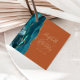 Den här eleganten har den moderna märkrn för bröllopsförmån en teal vattenfärgsdesign som trimmas med faux guld glitter. Anpassa enkelt guld-färgad-texten på en bränd orange-bakgrund, med namnen av bruden och trippen i handskriftsbilder över ett stort område. Lägg till ett personligt meddelande i skriptbokstäver av guld-färgad på baksidan.