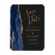 Eleganten i spara datum magneter har en marin blå vattenfärg som ruttnar gräns med faux guld glitter. Anpassa enkelt guld färgad-texten på mörkens kol-grått-bakgrund.