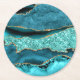 Agate Teal Blue Guld Glitter Marble Aqua Turcos Underlägg Papper Rund