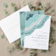 Inte alla bröllopsdesign är skapade lika. De asymmetriska layouterna för delarna i denna slående brölloppsuppsättning visar att det inte är en dålig sak! Vågiga band av färg i kontrasterande nyanser av tealblått och rosafärgad med en mitt av glittrande kristall bildar en geod/agataccent på de flesta delar i uppsättningen. Bröllopskortet "Tack" som visas här har ovanstående plus en mall för att lägga till ditt personliga meddelande, namn och bröllopsdatum. Baksidan har en koordinerande abstrakt bakgrund som påminner om sten med vener av glitter. Sök ID647 för att se alla koordinerande delar i denna uppsättning.