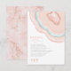 Inte alla bröllopsdesign är skapade lika. De asymmetriska layouterna för delarna i denna slående bröllopsuppsättning bevisar att det inte är en dålig sak! Vågiga band av färg i kontrasterande nyanser av roséguld och mjuk tealblå med en mitt av glittrande kristall bildar en geod/agataccent på de flesta delar i uppsättningen. "Details"-kortet som visas här har ovanstående plus en mall för att lägga till relevant bröllopsinformation för dina gäster. Baksidan har en koordinerande abstrakt bakgrund som påminner om sten med vener av glitter. Sök ID647 för att se alla koordinerande delar i denna uppsättning.