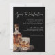 Elegant Black Whiskey-Themed Birthday Invitation. This sophisticated design features a bold black background with off-white fonts for a striking, modern look. The phrase “Aged to Perfection” appears in elegant handwritten script calligraphy across the top for a stylish introduction. A large black and white watercolor illustration of a whiskey bottle, glass, and ice is placed in the bottom left corner, adding a refined visual element.