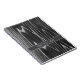 Minimal and monochrome, the design highlights the quiet beauty of traditional Japanese architecture and materials shaped by time. The subtle horizontal band allows for personalization, making it suitable as a journal, sketchbook, or thoughtful gift.