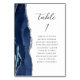 Det moderna kortet för bordsnummer i bröllop, som är lämnat kant i eleganten, har en marin blåfärgad agate i gräns som trimmas med faux silver glitter. Ord "bord" visas i handskriftsskript för kol-grått på vit bakgrund. Lägg till namnen för de gäster som tilldelats varje bord.