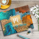 Agera vattenfärgsmonogram guld-turkos-orange pussel
