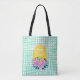 Ägg från glad påsk blommigt. Ägg av orange av utspädd blommigt med bakgrunden av återförsluten mönster. Retro rustic Påsk tote-säck