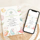 Letar du efter ett sött och stilrent sätt att inbjuda dina nära och kära till en påskäggsjakt och brunch? Leta inte längre än till denna akvarell påskinbjudan, med söta påskharar, ägg, en kyckling, blommor, fjäril och lövverk. Med en modern och iögonfallande design är denna inbjudan det perfekta sättet att säga "Ägg-extravaganza" och gå med oss för en härlig vårfirande.