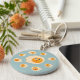 Nyckelkedja för söta ägg med lustig vektorillustration av lycklig-äggtecken över ljusblå bakgrund.