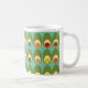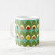 Denna mugg har en mitten av seklets modernistiska design med gröna ovaler med ovaler och cirklar i sig som får dem att se ut som ägg i retrofärger röda, gula, blå, gröna, bruna och orange på ett fält av ljusblått.