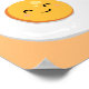 Tecknad på en av en glad äggleende, söt, rolig logotyp. Anpassadets bakgrund färg och text.