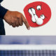 En pingpongpaddel för att skrämma andra spelare. Bara för roligt. Utformningen visar ett ansikte som är aggressivt, intensivt och lite skrämmande. Visa att ni bör ta er an konkurrensen på allvar och ha lite roligt med den.