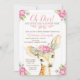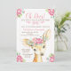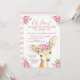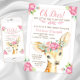 Flicka rådjur baby shower inbjudan med söta akvarell hjort kalv med vackra rosa blommor på huvudet på en vacker rosa blomsterbakgrund. Dessa söta rådjur baby shower inbjudningar kan enkelt anpassas för ditt evenemang genom att helt enkelt lägga till dina detaljer.