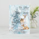 "Åh Älg, En Söt Bebis Är Nära!" skogs djur -- dovhjort och hjortkalv, kanin och fåglar med en grön gran bland snöfallet -- Baby Shower design.