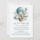 "Låt Äventyr börja" kallades för babyduschinbjudan med en vacker vit valp som håller en nalle riden i en teal luftballong. Bakgrunden till himmel är teal med teal- och vita moln med omgivande guld-stjärnor. Vit stjärna mönster på solid teal på inbjudan baksida. Mallar finns.