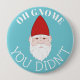 Lustigt knapp med en röd hatt med skäggig gnom och frasen "Oh Gnome you not".