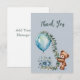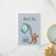 Skicka en hjärtlig tacksamhet med det här vackra tackkortet, perfekt designat för att matcha "Oh Boy! Vi kan vänta på babyduschtema. Med en söt nalle som håller en blå ballong omgiven av mjuk eukalyptus grey, tillför detta kort en charmerande och tankfull beröring till meddelandet. Idealisk för att du tackar gästerna för deras kärlek, stöd och generösa gåvor när du förbereder dig för att välkomna pojke.