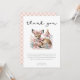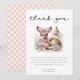 Åh Hjort! Inbjudan till Tack för babykläder i rosa innehåller ett tack till hälsning som lätt kan ändras. Baksidan av tacket är rosa och vit gingham.