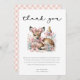 Åh Hjort! Inbjudan till Tack för babykläder i rosa innehåller ett tack till hälsning som lätt kan ändras. Baksidan av tacket är rosa och vit gingham.