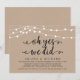 Vackra Moderna Vackra Rustika Bondgårdssträngljus, Svart Skriftstil på Kraftpapper Bakgrund, Bröllop Elopement Annonsering, Inbjudningskort (åh ja, vi gjorde det). Detta är perfekt för din bröllopsmottagning och efterbröllopsfirande. Lägg till dina detaljer i matchande teckensnitt / bokstäver.