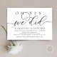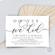 Modern romantisk minimalistisk Enkel Kalligrafi Skrift, Bröllopsflykt Fest inbjudan kort (åh ja, vi gjorde det). Det är perfekt för din bröllopsflykt tillkännagivande och festfirande, efter din bästa dag. Lägg till dina detaljer i matchande svart teckensnitt / bokstäver.