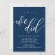 Vacker modern enkel marinblå kalligrafi, bröllopsflykt kungörelse, inbjudningskort (Åh ja, vi gjorde det). Detta är perfekt för din bröllopsfest och efterbröllopsfirande. Lägg till dina detaljer i matchande typsnitt / bokstäver.