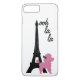 Roligten och flirten iphone case är dekorerade med Ola, skrivet i ett lekfullt typsnitt, rosa pudel och Eiffel Torn på vit bakgrund, skapar det stadens avund.