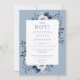 Denna eleganta 'åh pojke' dammiga blå blommiga babykalasinbjudan kan anpassas med din information i modern typografi. Designad av Thisisnotme©