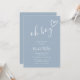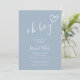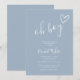En modern minimalist baby shower-inbjudan med ett sött handritat hjärta och stilren typografi på en dammig blå bakgrund. Designad av Thisisnotme