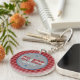 Handmålade röda gingham ramar en vintage line art röd brandbil med blå stjärnor och en rolig barninspirerad typografi.