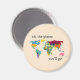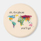 En vacker magnet med en färgstark världskarta och texten "åh, stället du åker" för din lilla.