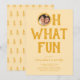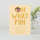 Ge din festliga fest en modern twist med våra moderna gula julfestinbjudningar. Med den lekfulla frasen "oh what fun" fångar de den glada stämningen, och dessa inbjudningar visar en unik design där värdens foto ersätter "o":et och en charmig doodle-ram ytterligare förhöjer den. Med en lättredigerbar textmall är personalisering en barnlek. Välkommen till en värld av chic julfirande som passar just din stil!