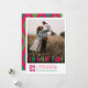 Det här kortet är färgglatt och festligt för familjen som älskar att ha kul! Ditt foto är i centrum med "Åh Vilken Rolighet" längst ner och din hälsning under. Baksidan av kortet har ett matchande ikat-mönster.