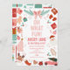 Vilken Roligt! En födelsedagsfest inbjudan för din lilla väns helgdag 1:a födelsedag party. Med vackra rosa och röda julillustrationer.