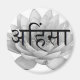 Den här bilden visar den symboliska lotus-blomman med sanskrit ord Ahimsa. Ahimsa elak icke-våld och fred mot allt levande sak.