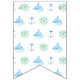Ett sött nautiskt themed baner som tillfogar det fulländande handlag till din baby shower. Att presentera "Ahoy den är en pojke" på individstanderter i vitbrev på en blåttbakgrund. Ord avskiljs av standerter som presenterar ett nautiskt inspirerat mönster som göras upp av, ankrar, rullar frakten, och segelbåtsilhouettes med blått/en grön vattenfärg texturerar. Shoppa den hela nautiska babysamlingen för koordinerande objekt för din baby shower.