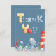 Den sötblåa havsbakgrunden färg med nautiska inslag av bläckfisk, ankare, valar, vinkar, stjärnfisk och andra sötvattensartiklar bidrar till att ge liv åt denna söta utformning för duschkortet "Tack" för perfekt pojke. 100 % "kundtillfredsställelse med "Zazzle" varje dag.