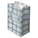 Skapa en presentpåse i personlig som är perfekt för babyduschar som hedrar mammor till att bli av pojke. Den här presentsäcken har ett nautiskt roligt med blått och grädde i mönster och sloganen "Ahoy it's a boy" på framsidan. På motsatt sida läggs mottagarens namn till.