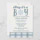 Ahoy! Det är en pojke! Vi firar att en nyfödd bebis anlände till stil med dessa inbjudningar till sjöbabyduschen. De har den söta sloganen "Ahoy it's a boy", en mjuk blå och gräddpalett i färg och plaid och nautisk accents.