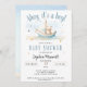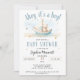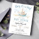 "Ahoy, det är en pojk" "Baby Shower-inbjudan med en söt illustration av en björn i en segelbåt. Baksidan har en ljusblå vattenfärgsbakgrund med bilden av den söta segelbåtens björn.